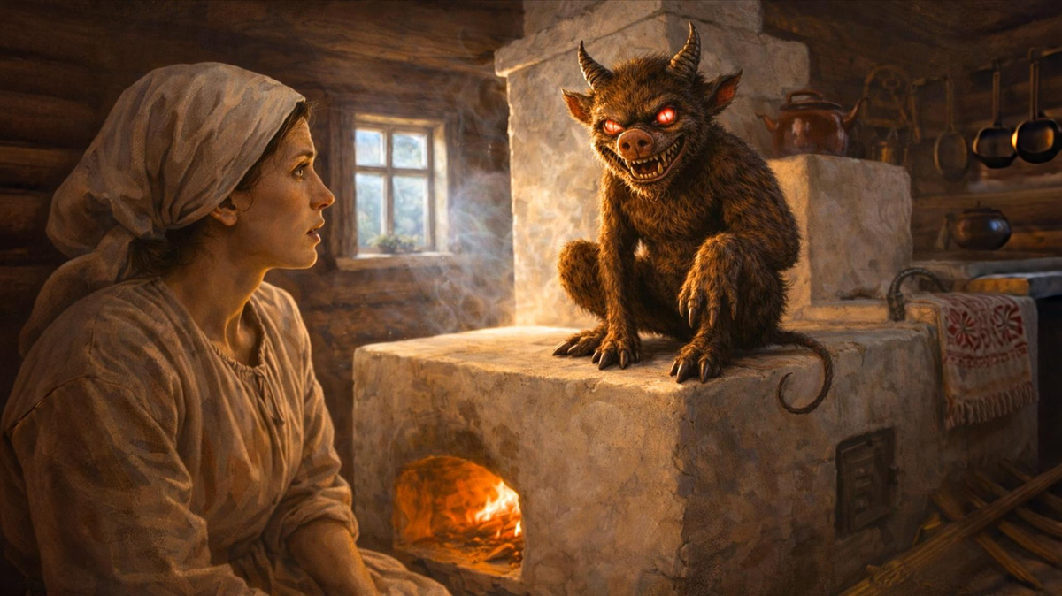 Угол за печью пока был обыкновенный угол: тёмный, с паутиной у потолка, с прислонённым к стене ухватом. Прасковья несколько раз за утро подходила, глядела туда — и ничего. Ни шороха, ни движения, ни запаха. Днём он себя никак не выдавал, и Прасковья понимала, почему: всё, что от такой твари, приходит в свой час, а час её — ночной.