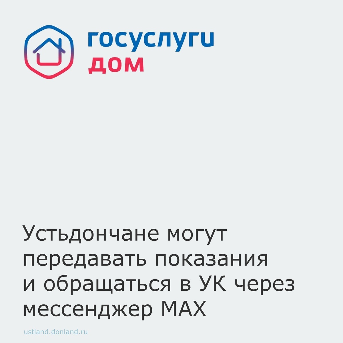 С 1 апреля жители многоквартирных домов могут передавать показания счетчиков и направлять обращения в управляющую организацию через официальный чат-бот «Госуслуги Дом», который отмечен специальным значком в интерфейсе в мессенджере MAX. 📲Внутри чатбота доступно мини-приложение с готовыми сценариями. Ранее в мессенджере были запущены домовые чаты для взаимодействия жителей и управляющих организаций. Новый функционал стал следующим этапом развития этого формата. Доступ к функциям организован следующим образом: необходимо открыть домовой чат и перейти в чат-бот «Госуслуги Дом», где доступно мини-приложение. 👉Чат-бот доступен по ссылке: https://clck.ru/3T83eL #УстьДонецкийрайон #АдминистрацияУстьДонецкогорайона #ЖКХ