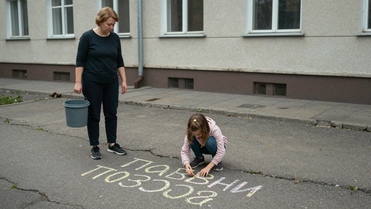 Пальцы дрожали. Я подошла к окну. Полина закончила писать. Теперь она сидела на скамейке, сжимая в руках остаток жёлтого мелка, и смотрела на дорогу. Она ждала.
