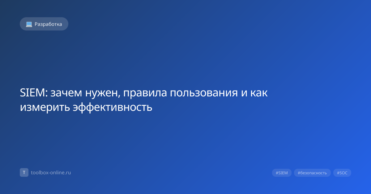 SIEM нужен для централизованного сбора и корреляции событий безопасности, он позволяет в реальном времени обнаруживать угрозы и измерять эффективность защиты — всё в одном интерфейсе. Если в вашей инфраструктуре более 200 конечных точек и каждый день генерируется более 5 000 логов, то без SIEM вы теряете возможность увидеть полную картину. Ключевые признаки: Неправильная конфигурация приводит к пропуску 70 % реальных атак, потому что система либо генерирует шум, либо игнорирует важные события. Основные правила: Сократить количество ложных тревог можно, уточнив пороги и добавив контекстные данные, такие как геолокация и роль пользователя. Пошаговый план: Эффективность измеряется набором конкретных KPI, отражающих скорость обнаружения и реагирования, а также экономию ресурсов. Ключевые показатели: Успешное внедрение требует поэтапного подхода и интеграции с существующими процессами, иначе проект может превратиться в «дорогой журнал». Рекомендованный план: Воспользуйтесь бесплатным инстру