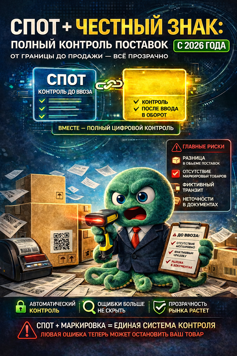 Связка СПОТ и «Честного знака» делает товар полностью прозрачным — от границы до продажи. 🔍 Как теперь работает система СПОТ — фиксирует поставку ещё до ввоза