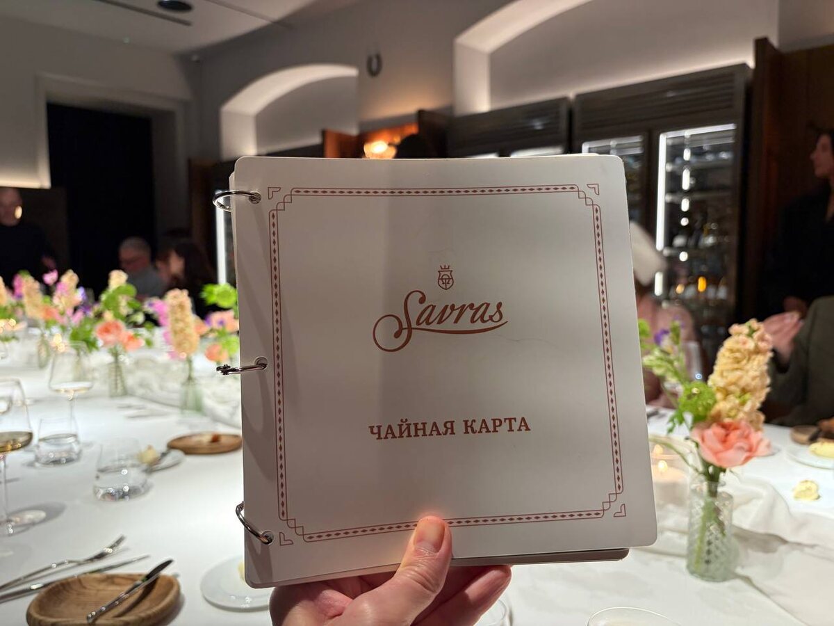 И тут вообще не соврали. Для начала, тут на входе большая кондитерская с пирожными, тортами и прочим. А главное – тут какая-то феноменальная, для ресторана особенно, чайная карта, та самая, авторства Виктора Енина из «Чайной Высоты». Вам приносят солидного вида книжку со списком в несколько десятков сортов, идеально структурированных (светлые, темные, пуэры, ароматизированные, травяные и тд) и понятно описанных. Нашлось место и фирменным шуточкам Виктора, и четким параметрам: бодрость, аромат, терпкость. Чаи максимально интересные – модерновые китайские красные, классические ароматные зеленые, грузинская габа, я минут 10 листал и любовался. Но изображать из себя чайного знатока тоже никто не заставляет, если не хотите изучать оттенки весенних урожаев с диких тайваньских деревьев – можно попросить обычного черного/зеленого, они тоже есть, и тоже максимально качественные. 🗺 Savras Большая Дмитровка 9, стр 1 +74991102070 savras.ru 😘«Соль» в ВК и в MAX 🧂 @saltmagazine
