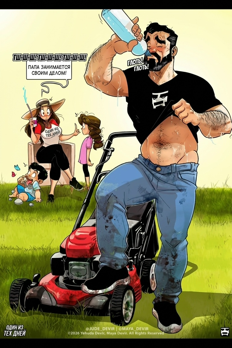Комиксы по мотивам семейной жизни являются нишевыми, и привлекают в основном тех, кто не понаслышке знает что такое быт и воспитание детей. Но есть одна семья, которая вывела семейные комиксы, на совершенно другой уровень и они не просто самые популярные авторы в этой теме, они в принципе одни из самых популярных авторов комиксов в мире. Да, вы правильно подумали, ведь речь пойдет о комиксах "Один из тех дней" ("One of Those Days") и их авторах Иегуде и Майе Девир. Иегуда и Майя Девир — семейная пара из Израиля, а по совместительству иллюстраторы и авторы популярных комиксов. Многие ошибочно считают, что они познакомились во время обучения, но на самом деле их знакомство случилось во время службы в армии. Как вы знаете в Израиле служат и мужчины, и женщины, и так совпало, что Майя и Иегуда проходили службу в один период времени. Пара много общалась, но заводить отношения они не решались, так как боялись, что их будут обсуждать за спиной. Встречаться они начали уже после службы, когда