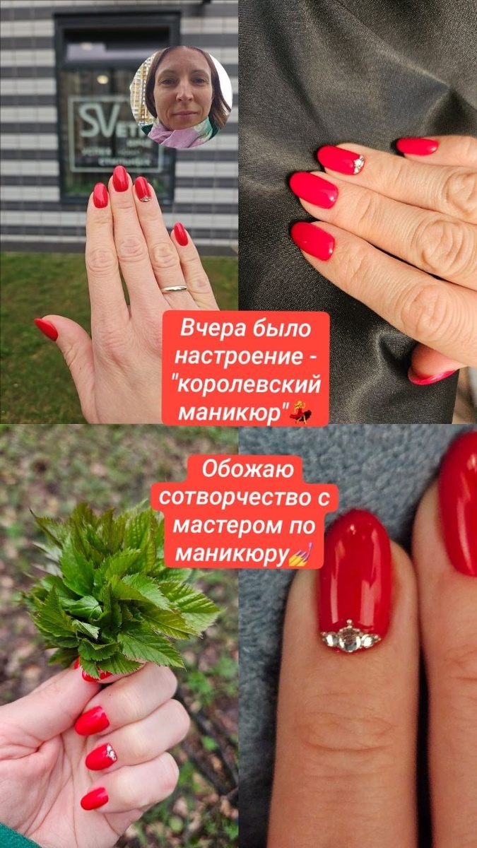 😊 Решилась-таки выбрать для себя красный маникюр со стразами, а мастер неожиданно сложила из страз корону - вот и всё, королевский маникюр - роскошное настроение! 💅👸💃 И да, сразу рыцари с оружием нарисовались и цветов надарили. 🥰 ❣А какое настроение вы себе создали сегодня, и при помощи чего, поделитесь? #радость_открытий@happy_family_way