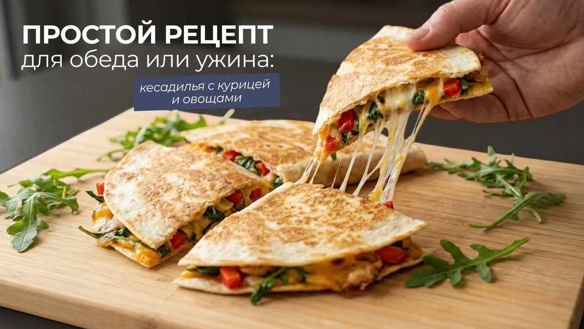 Кесадилья с курицей и овощами — это простой, сытный и очень удобный вариант, который можно приготовить буквально за 15–20 минут.