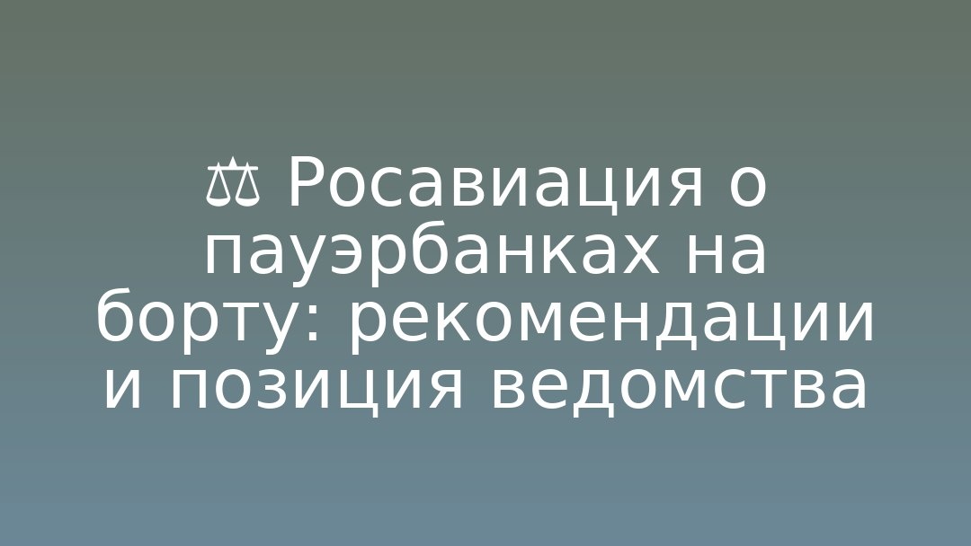 , повреждение кресла, ожог у пассажира) комиссия Уральского МТУ Росавиации рекомендовала Минтрансу рассмотреть изменения воздушного законодательства вплоть до запрета использования пауэрбанков на всех этапах полёта. Росавиация уточнила, что оснований для полного запрета провоза пауэрбанков сейчас нет; мнение комиссии носит рекомендательный характер, а действующие правила регулируются международными требованиями и правилами авиакомпаний.