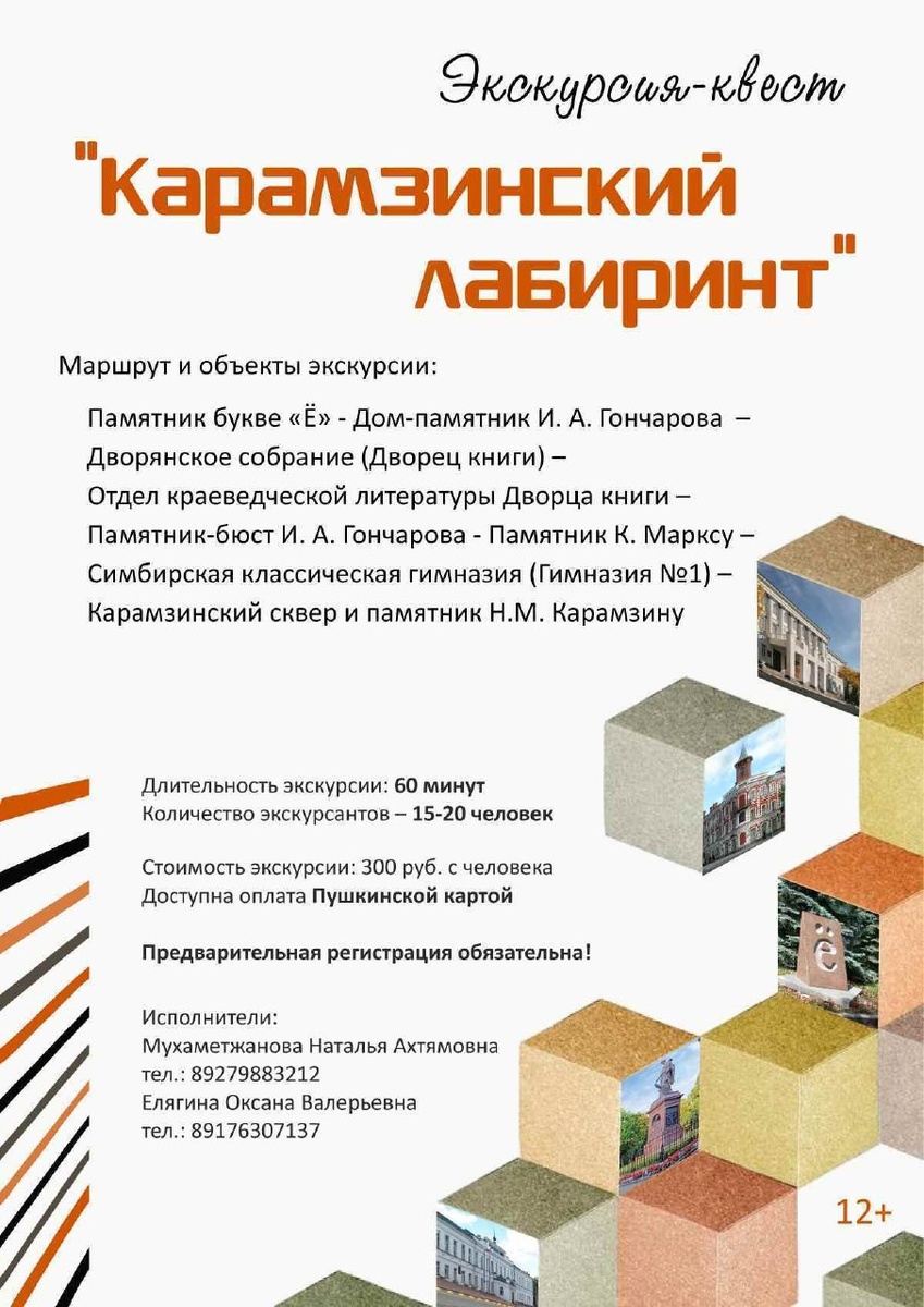 ! ⭐️Сегодня экскурсия-квест «Карамзинский лабиринт» вновь оживляла историю на улицах города! Участники не просто прогулялись по историческому центру города, но и разгадывали тайны, выполняли увлекательные задания. Путешествие началось в старейшей библиотеке региона — месте, хранящем память о Карамзине, — а затем продолжилось среди знаковых достопримечательностей, тесно связанных с его наследием. 😍Хотите также? Собирайте команду от 10 человек и вперед за историческими приключениями! 🏃♀️Стоимость участия 300 рублей. Доступна оплата Пушкинской картой Билеты доступны по ссылке https://clck.ru/3T9qGK 📱Подробности и детали: +7 (8422) 44-30-84 - отдел краеведческой литературы и библиографии. Вы можете согласовать с нами удобные вам время и дату мероприятия! #дворецкниги #карамзин #ульяновск #культура73 #пушкинскаякарта