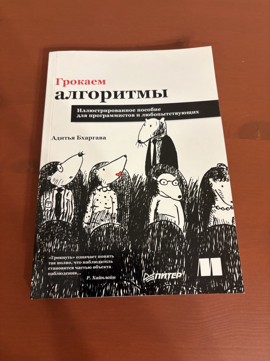 Должен сказать, что если бы у меня была возможность вернуться в прошлое, и заново начать изучение алгоритмов с чистого листа, то я бы, однозначно, начал с этой книги. Книга охватывает все ключевые темы от понятия “О-большого” до динамического программирования, передавая основную суть с помощью простых, но емких примеров и иллюстраций. Для опытных специалистов материал может показаться слишком простым, но повторение, как известно, есть суть учения, а пробелы в некоторых темах, я уверен, найдутся у многих. Также, книга может оказаться очень полезной при подготовке к собеседованиям. В общем, ставлю уверенную четверку и оставляю здесь. 4.3/5
