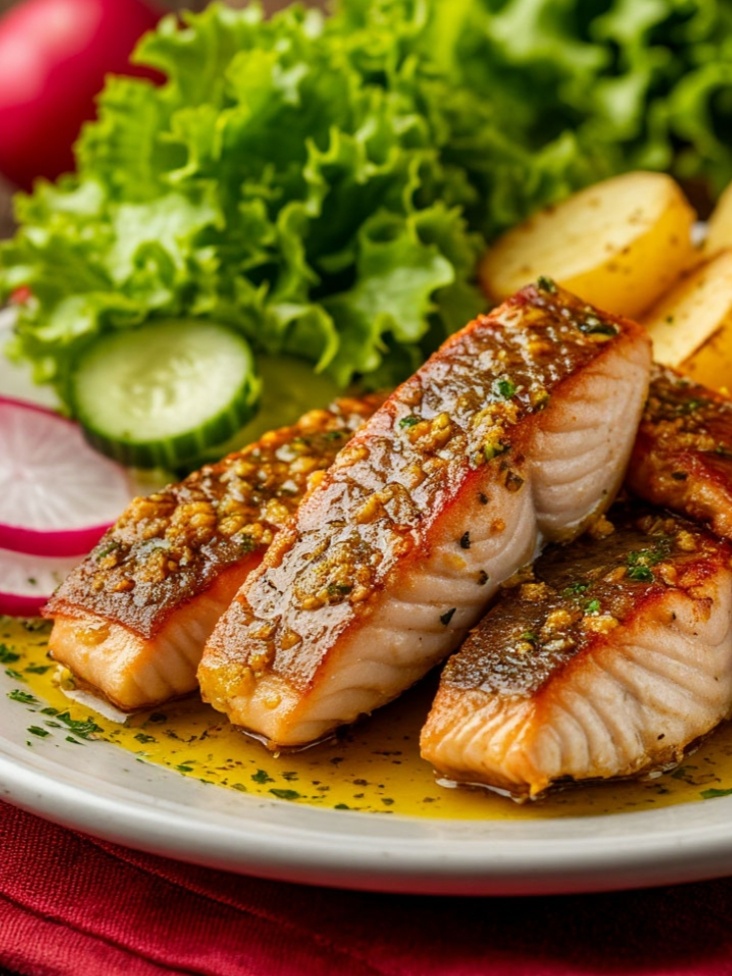 Если вы считаете, что скумбрия — обычная рыба, попробуйте приготовить её по этому рецепту — вкус преображается полностью. Благодаря сочетанию горчицы и соевого соуса блюдо приобретает насыщенный, пикантный оттенок, а внутри оно остаётся мягким и влажным.