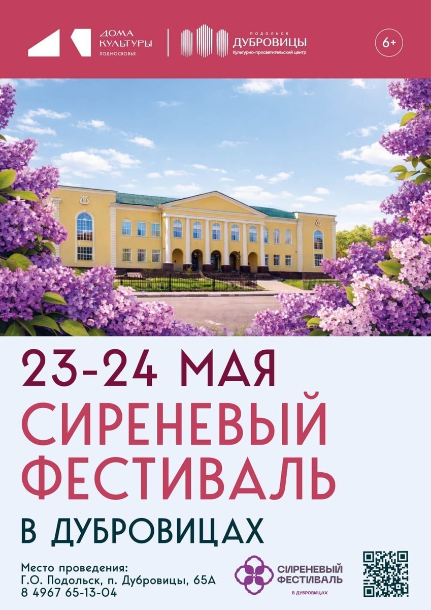 ✨ СИРЕНЕВЫЙ ФЕСТИВАЛЬ В ДУБРОВИЦАХ 💓 23–24 мая 🌿 Что же вас ждет на нашем фестивале? 🌺 Сиреневое царство: выставка редчайших сортов сирени 🎶 Музыка для души 🎨 Творческие мастер-классы (декупаж, батик и создание декора) 📸 Яркие фотозоны 👗 Театр мод 🧁 Фудкорт 🎁 Сувениры ПРОГРАММА в афишах 🚫 Возраст: 0+ 📆 23.05.2026 🏢 Культурно-просветительский центр "Дубровицы" 📍 г.о. Подольск, поселок Дубровицы, д. 65А ⭐Поддержать канал голосом 🍰Где поесть в Подольске ✅ Мероприятия Подольск https://dzen.ru/id/66ed500f7b5671493eca3fd6 https://vk.ru/podolsk_events http://dzen.ru/podolsk_events