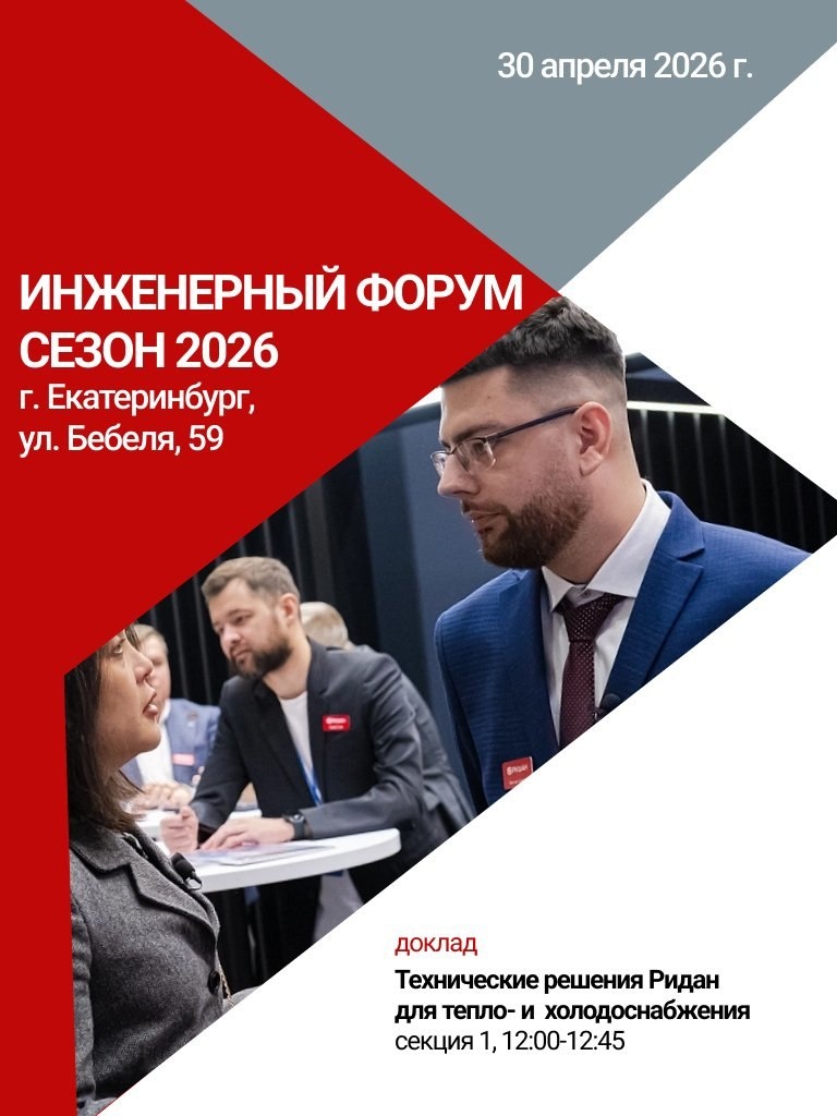 ? Им нужны не презентации, а работающие решения. 30 апреля в Екатеринбурге — практикум, где именно это и покажут. Наш эксперт расскажет о технических решениях Ридан для тепло- и холодоснабжения. Вход свободный, но по регистрации. Приходите проверять гипотезы! 💪 Наши каналы: ВК, Дзен, MAX #ридан_event
