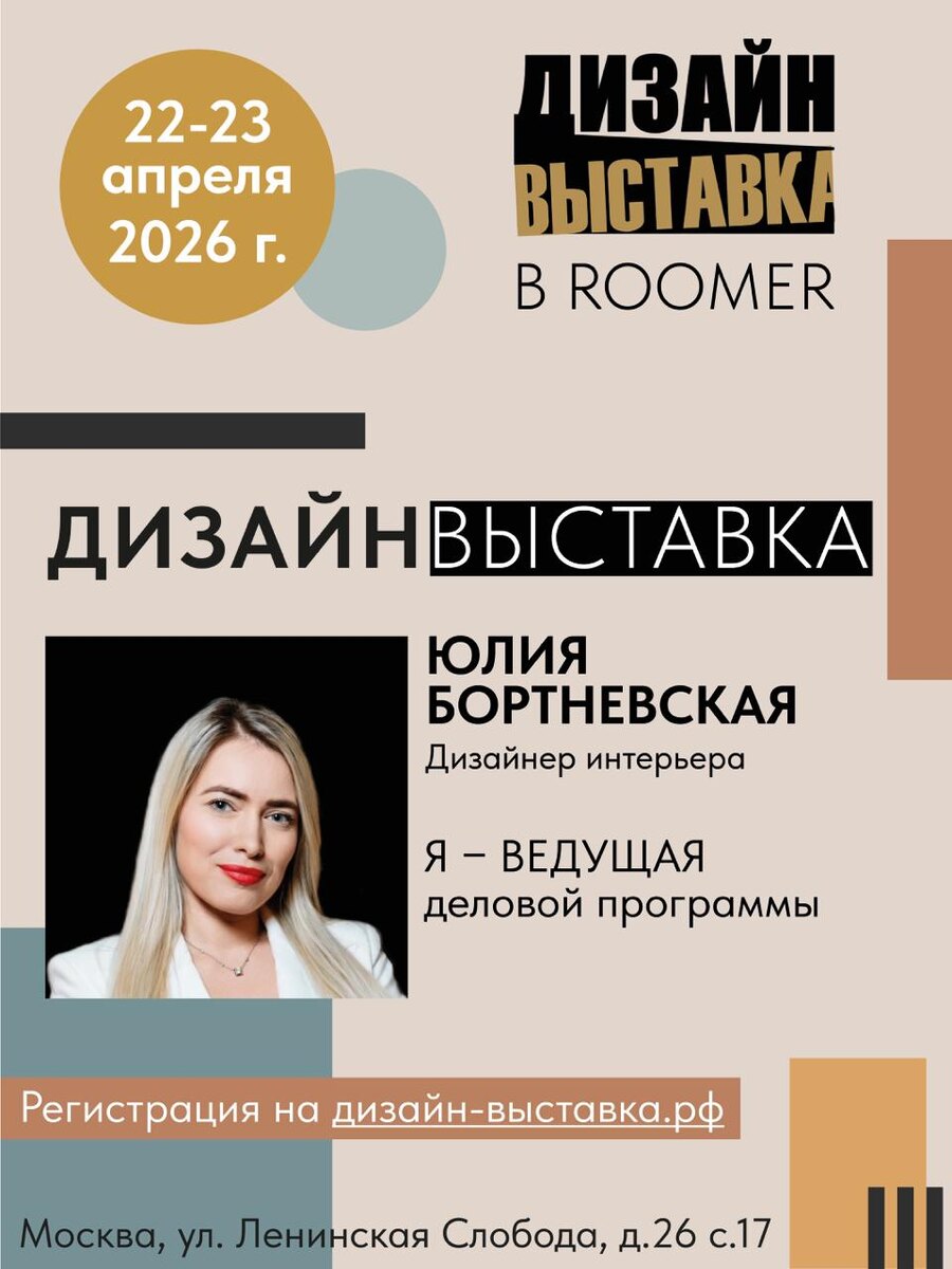 ✨ Это двухдневная B2B-выставка для дизайнеров и архитекторов, которая пройдет в ROOMER. В программе: — лекции — круглые столы — блиц-разборы — батлы — розыгрыши — и специальные предложения от участников Будет много полезного контента, живого общения и сильного профессионального комьюнити. Я буду сопровождать всю деловую программу как ведущая — поэтому обязательно приходите, будет интересно и очень насыщенно. 📍 22–23 апреля ⏰ 11:00–19:00 📌 ROOMER, ул. Ленинская Слобода, 26с17 (м. Автозаводская) Участие бесплатное, по регистрации 👈 Буду рада видеть вас лично ✨ #ДизайнВыставка2026