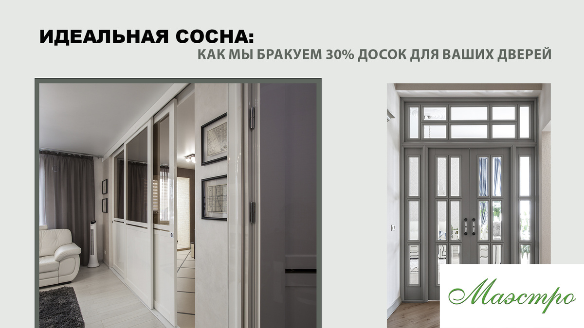 Представьте: вы купили красивую межкомнатную дверь из массива сосны. Через полгода на ней проступили тёмные пятна, а в одном месте вылез смоляной «карман». Знакомая история? Это не брак производства. Это проблема выбора сырья. Многие производители экономят на самом главном — на доске. Они берут сосну «эконом»: с сучками, смоляными кармашками, кривым волокном. Затем шпаклюют, красят и… продают. Но через сезон отопления такие двери «ведут», смола вытекает, а в месте сучка может пойти трещина. Мы в салоне дизайнерских дверей Маэстро (и наши партнёры-производители) работаем иначе. Рассказываем, как мы отбираем массив сосны для межкомнатных дверей, чтобы они служили десятилетиями. Сосна бывает разной. На рынке массово продаются доски классов «В» и «С» — с сучками, червоточинами, синевой. Мы используем только отборный массив (Extra). Это значит: Почему это важно? Сучок — это инородная структура. Со временем он выпадает, оставляя дыру. Смоляной кармашек при нагреве (рядом с батареей, на солнц