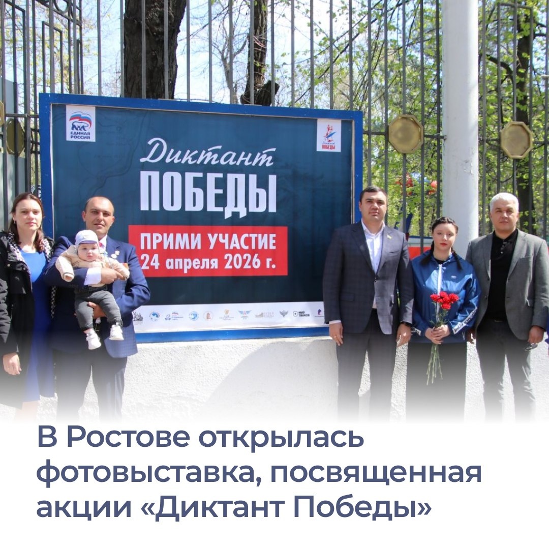 столицы. Выставка размещена на входах в парк Революции. Она является приглашением принять участие в «Диктанте Победы», который состоится на Дону, 24 апреля. В нынешнем году акцию посвятят Маршалу Жукову. В день проведения акции на Дону откроют около 1440 площадок, в том числе, в Аксайском военно-историческом музее, музейном комплексе «Самбекские высоты», мемориале «Змиевская балка», домах культуры, образовательных учреждениях, подразделениях различных служб. Задания будут размещены на сайте диктантпобеды.рф. Добавим, акцию проводят по партпроекту «Историческая память». #Ростовскаяобласть #Диктант_победы