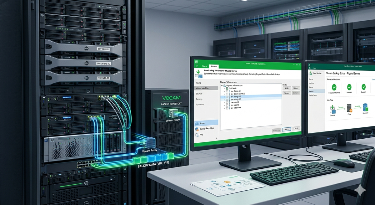 В инфраструктуре любого предприятия физические серверы продолжают играть важную роль. Это могут быть контроллеры домена, файловые серверы, серверы 1С, legacy системы, которые невозможно виртуализировать. Однако в отличие от виртуальных машин, где резервное копирование часто встроено в гипервизор, защита физических серверов требует отдельного подхода. Администратору нужно обеспечить регулярное бэкапирование, минимальное влияние на работоспособность сервера, централизованное управление и быстрое восстановление как целиком, так и на уровне отдельных файлов. Veeam Backup & Replication, известный как лидер в защите виртуальных сред, предоставляет полноценное решение и для физических серверов через Veeam Agent for Microsoft Windows и Veeam Agent for Linux.
