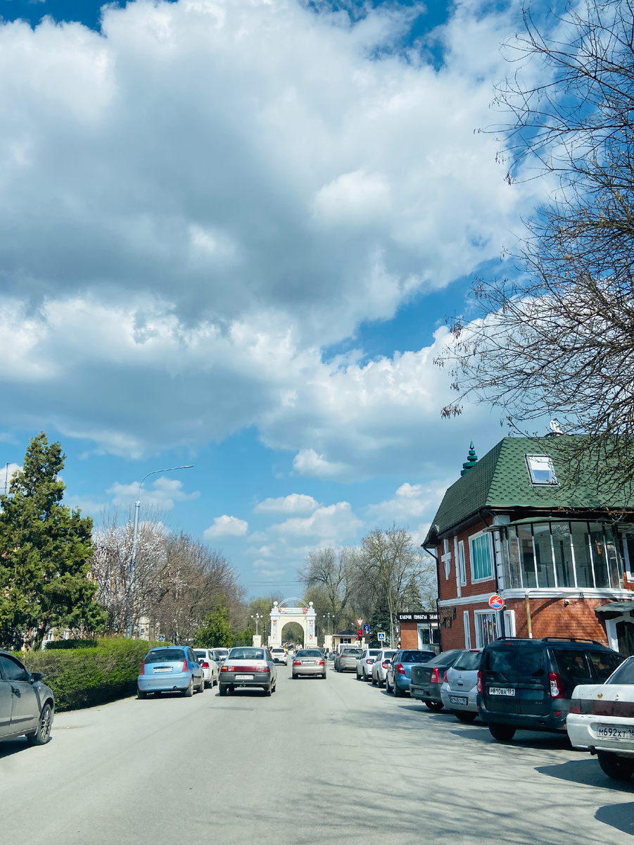 В прошлый раз мы с вами прогулялись по туманному городу и набережной, сегодня посмотрим на Таганрог солнечный. Вырвалась в перерыв на небольшую прогулку с дочкой, покажу, что успела увидеть. Я хоть и удалёнщик, но рабочий режим соблюдаю, у меня практически полный рабочий день, как если бы я работала в офисе. Разница только в том, что мне нужно никуда ехать, моё рабочее место дома. Сначала забежали быстро перекусить в «Додо Пиццу» (ул. Петровская, 57). Место удобно расположено, рядом много достопримечательностей, здание находится в историческом центре. Вид из окошка симпатичный. В здании на втором этаже когда-то располагался ресторан «Баку», а на первом — кафе-кондитерская «Красный мак». Ресторана нет давно, а вот кафе работает по сей день. Пицца, кстати, вкусная была. 🌞. В солнечную погоду город выглядит совсем иначе. Даже нелюбимый мною жёлто-бежевый оттенок зданий выглядит вполне неплохо. Пока солнышко, едем на набережную, а то в прошлый раз гуляли в тумане. Давно хотела показать ле