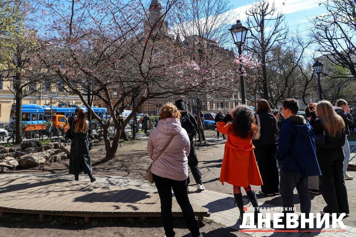 Сакура в Саду дружбы в Петербурге перешла в стадию активного цветения – множество петербуржцев приходят, чтобы запечатлеть цветы и полюбоваться ими. Обстановку на месте запечатлел фотограф «Петербургского дневника». Ранее «Петербургский дневник» сообщал, что в Московском районе Петербурга появится новая точка для наблюдения за цветением сакуры. На локации уже расположилась скамейка в азиатском стиле и тематические аксессуары.