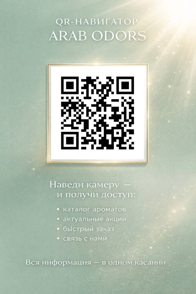 📲 Мы сделали удобный навигатор, где собрали всё самое важное: — контакты для связи — мессенджеры — адрес шоурума — актуальные акции — ассортимент Теперь не нужно искать нас по разным платформам — всё доступно по одной ссылке. Если вдруг какой-то способ связи не отвечает — просто переходите в навигатор и выбирайте удобный вариант 👌 Мы всегда на связи и сделали всё, чтобы вам было максимально просто и удобно оформить заказ. 📌 Переходите: https://taplink.cc/arab_odors 📌 Или сканируйте QR-код на изображении Сохраните, чтобы не потерять.