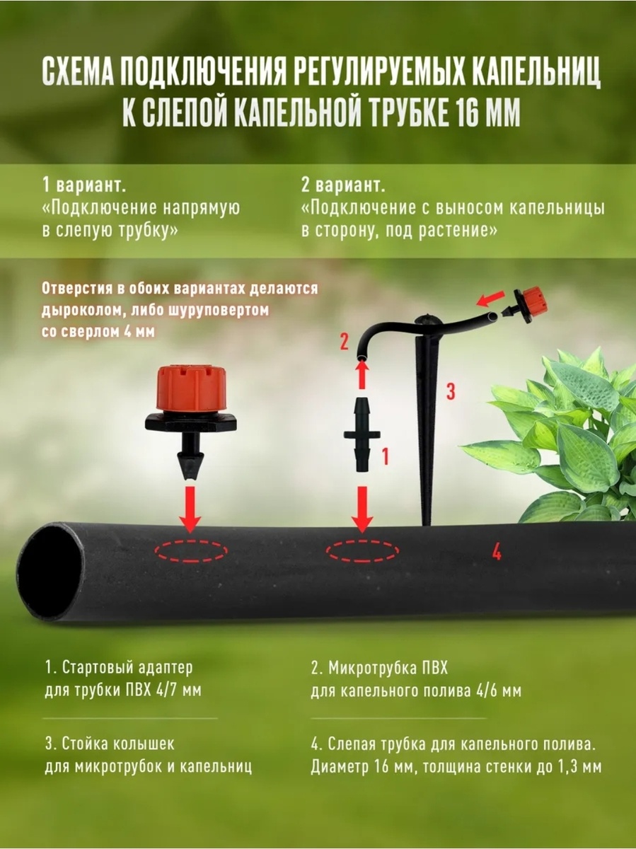 Вторую ПНД трубу прокладывать нет смысла, проще и дешевле от действующей провести еще одну капельницу. В трубе делаем дополнительное отверстие, вставляем стартовый адаптер, крепим трубку ПВХ нужной длины и на конце капельницу. Все как на этой картинке.
