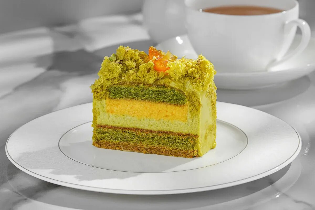 В «Кофемании» запустили весеннюю коллекцию десертов от Cake Buro, где фисташковый «Эфенди» соседствует с тропическим «Манговым лесом». С 16 апреля в ресторанах «Кофемании» появилась новая десертная коллекция, которую для сети придумала шеф-кондитер Cake Buro Елена Железнякова. Вместо декоративного сезонного обновления здесь сделали короткую, но собранную линейку, где каждый десерт выстроен вокруг ясного вкусового сценария. Один работает через ореховую глубину и цитрусовую свежесть, другой через более лёгкое тропическое сочетание с заметной фруктовой кислинкой. В новой коллекции «Кофемании» важен не внешний эффект, а точная работа с текстурой, кислотностью и чистой сладостью. «Эфенди» строится вокруг фисташки, но не сводится к одному знакомому вкусу. Внутри соединяются мягкий бисквит, плотный крем и хрустящий элемент, а фруктовая часть с апельсином и кумкватом делает композицию более бодрой и собранной. В результате десерт уходит от прямолинейной сливочности и держится на балансе между