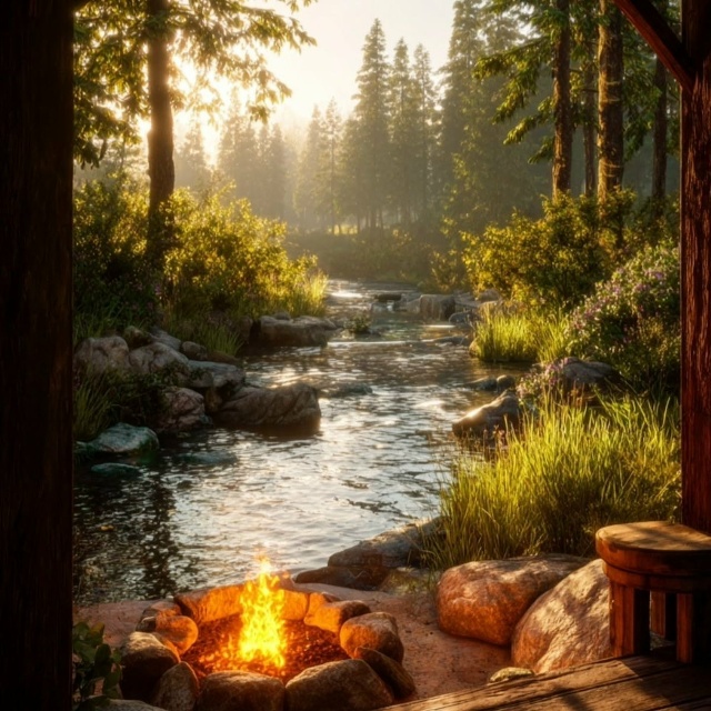 Огромная, сложенная из дикого камня, с закопчённым сводом и широким устьем, из которого тянуло теплом и запахом ржаного хлеба. Печь топилась сама собой — внутри весело плясал огонь, потрескивали дрова, хотя никого рядом не было. На шестке стоял чугунок, накрытый деревянной крышкой. Из-под крышки выползал пар, густой и сытный.