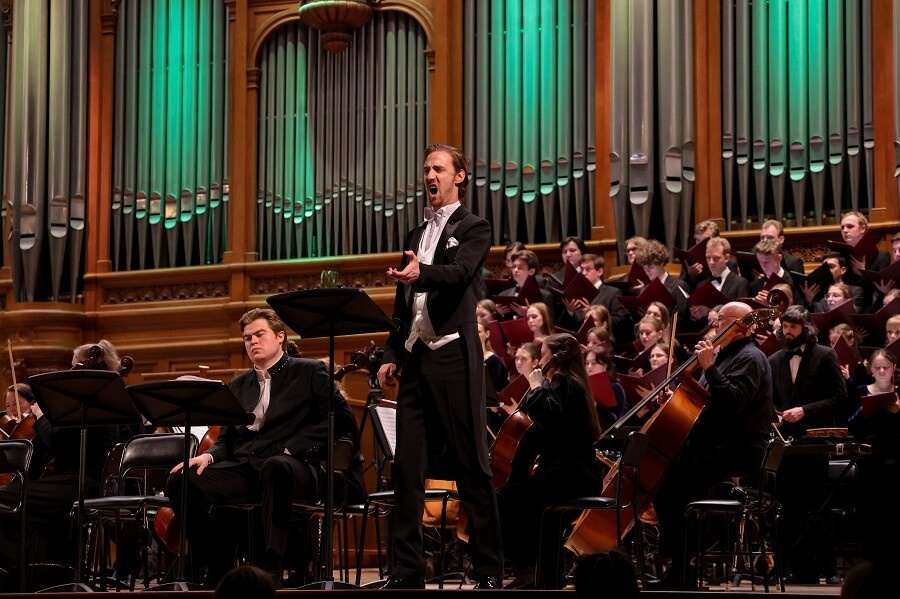 В Москве пока отважились лишь на концертный формат – его осуществили силами студентов Московской консерватории. Конечно, стоит делать на это скидку: перед нами пока ещё не готовые солисты-вокалисты, соответственно, и спрос с них – не такой строгий. Это же обстоятельство и несколько снижает общий «выхлоп» от события – и информационный (на студийное мероприятие набралось публики едва треть БЗК, рекламы московской премьеры почти что и не было), и собственно художественный: если бы опера была представлена профессионалами, а не робкой молодёжью, да ещё и в полноценной театральной версии, впечатление от неё было бы иным, более сильным.