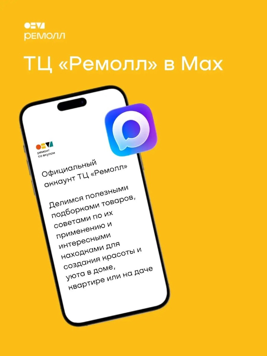 !📲 ТЦ «Ремолл» выходит на новую площадку. Подписывайтесь на наш канал, чтобы не пропустить новинки, специальные предложения и свежие идеи для вашего ремонта! 📌МАХ: https://clck.ru/3T9rv8