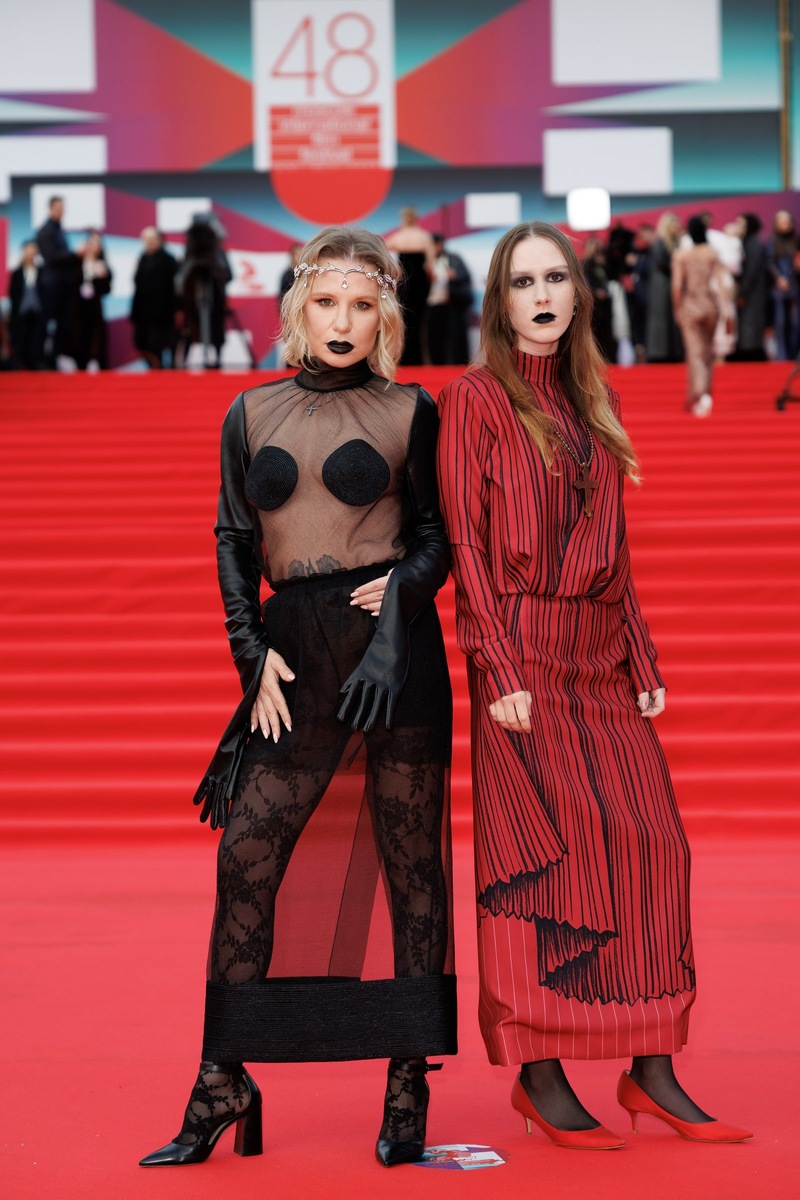 Валерия Гай Германика удивила выбором наряда для выхода на красную дорожку открытия 48-го Московского международного кинофестиваля (ММКФ). Торжественное мероприятие состоялось в Театре мюзикла на Пушкинской площади в Москве. На красную дорожку кинематографистка вышла со своей 18-летней дочерью Октавией. 42-летняя Гай Германика выбрала откровенный наряд – надела прозрачное черное платье-сетку с длинными кожаными рукавами и вставками в области груди. Звезда сделала укладку и украсила прическу серебряным венцом. Визажисты сделали ей макияж в готическом стиле, накрасив губы черной помадой. Октавия, в отличие от матери, предпочла максимально закрытое платье красного цвета в черную полоску. Свой образ она дополнила подвеской с увесистым крестом. Девушка распустила волосы и, как мама, сделала готический макияж с черной подводкой, дымчатыми тенями и черной помадой. В 2025-м Октавия вышла замуж и родила ребенка, подарив знаменитой матери первого внука. У Германики также есть девятилетняя дочь С