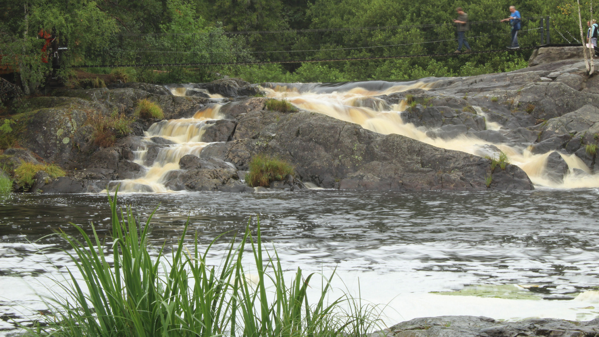 Есть фильм такой "А зори здесь тихие", который знает почти каждый из старшего поколения. Но не все знают, что многие сцены фильма снимались в Карелии, в частности, на Карельских водопадах, носящих труднопроизносимое название - Ахвенкоски. На реке Тохмайоки водопады образовались благодаря ее разливу. Всего в каскаде их 4. К слову, Тохмайоки в переводе с финского означает "Бешенная река". Смотря на бурлящие потоки, сложно с этим не согласиться. Да и этот каскад не единственный. На протяжении 50 километров на реке встречаются пороги разной степени сложности, недаром она пользуется большой популярностью у рафтеров. Коричневый цвет воды в бурлящих потоках связан с тем, что в ней большое количество железа, ведь не так далеко отсюда расположен железный рудник. Несмотря на небольшую высоту, водопад весьма живописен, а уж нас, равнинных жителей, любой водопад или порог может привести в восторг.