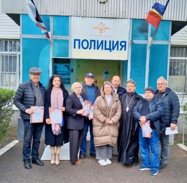 В ОМВД России по Песчанокопскому району начальник отдела Алексей Морозко вручил удостоверения членам обновленного общественного совета. В его состав вошли представители различных профессий и сфер деятельности, активисты общественных объединений, священнослужитель. Основная задача общественного совета при ОМВД — быть связующим звеном между населением и правоохранительной системой. Совет наделен полномочиями осуществлять контроль над деятельностью полиции, а также следить за тем, как органы внутренних дел соблюдают права и свободы граждан. Новый состав общественного совета: Наталья Владимировна Пискушова – председатель совета, директор СОШ №39 пос. Дальнее Поле. Роман Юрьевич Бородин, заведующий педиатрическим отделением ГБУ РО «ЦРБ» в Песчанокопском районе. Татьяна Викторовна Романченко, начальник контрольно-организационного отдела администрации Песчанокопского района. Владимир Петрович Лавриненко, пенсионер. Сергей Иванович Медведев, ветеран ОМВД. Виктор Иванович Зубов, протоиерей, нас