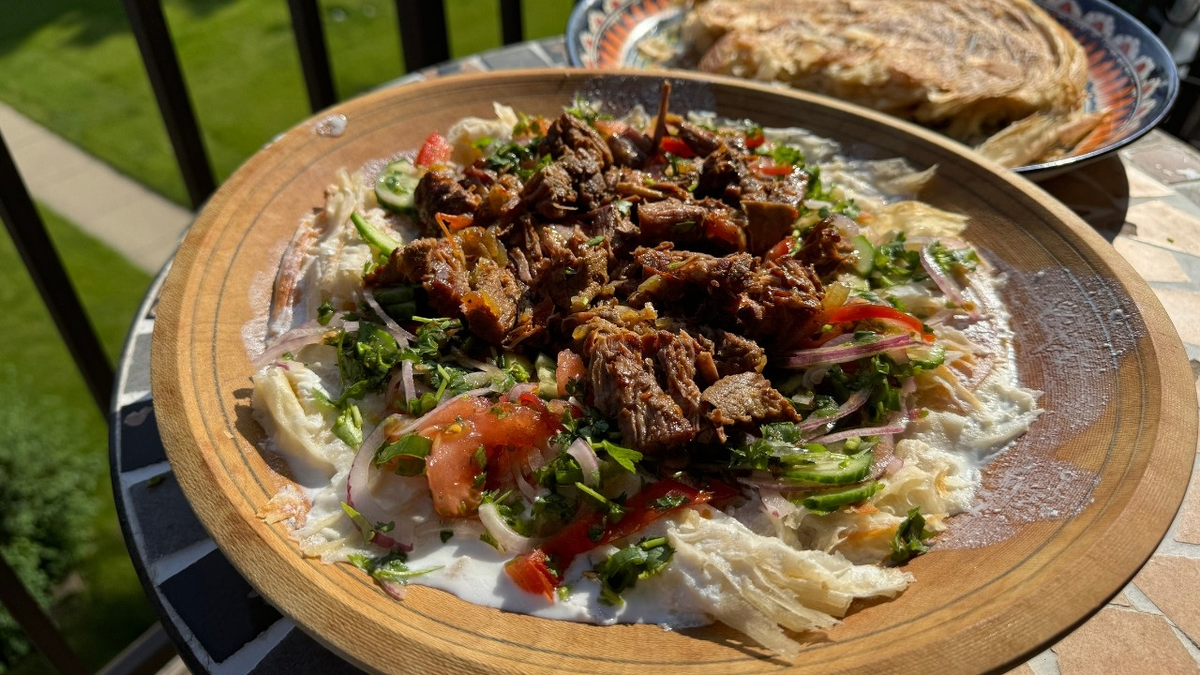 Куртоба — это простое, но очень необычное блюдо восточной кухни. Его вкус сложно сравнить с чем-то привычным: лёгкая кислинка, мягкая текстура хлеба и аромат жареного лука создают уникальное сочетание. Это идеальный вариант, если хочется попробовать что-то новое без сложных ингредиентов. Для приготовления вам понадобятся: Сначала подготовьте основные продукты: Курут нужно растворить в тёплой воде до состояния соуса. Лук нарежьте тонкими полукольцами. Лепёшку разломайте на небольшие кусочки. Перемешайте перед подачей. Куртоба подаётся сразу после приготовления. Её едят горячей, пока хлеб остаётся мягким, а соус — насыщенным. Часто блюдо подают в одной большой тарелке. Куртоба — это пример того, как из простых продуктов можно создать что-то по-настоящему уникальное. Попробуйте приготовить — и вы удивитесь, насколько это вкусно. 👉 Подпишитесь на канал, чтобы не пропустить новые рецепты!