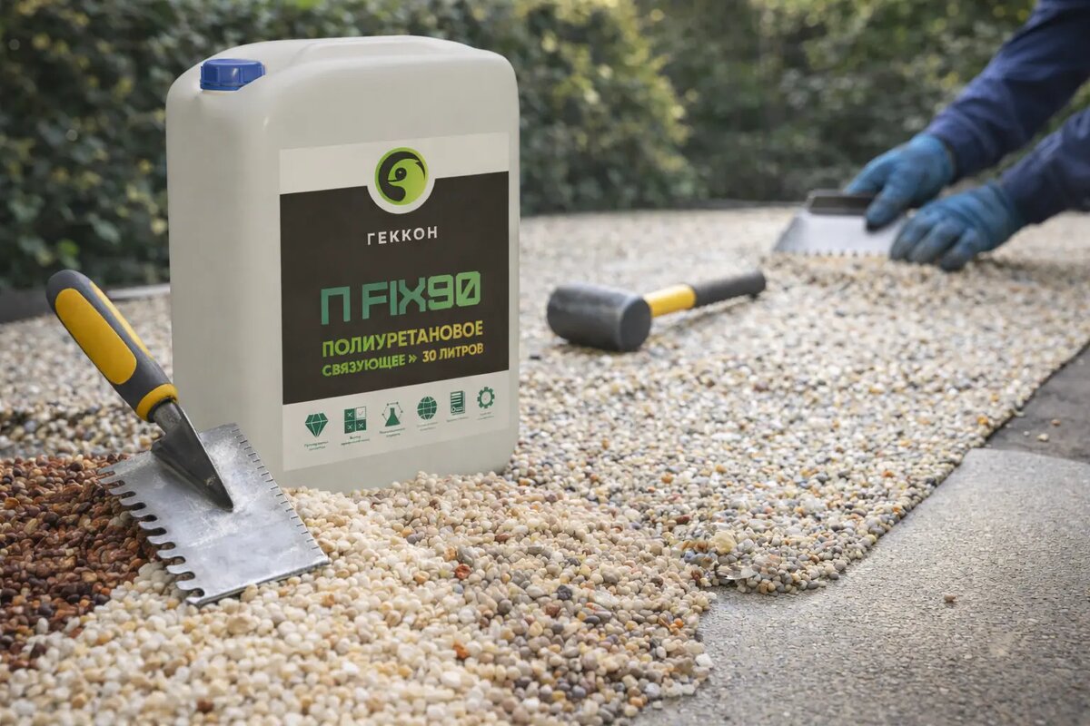 Как выбрать связующее для камня — это один из главных вопросов для тех, кто планирует сделать каменный ковер, водопроницаемую дорожку, декоративное покрытие из гальки, мраморной крошки или кварцевого заполнителя. На практике ошибка здесь стоит дорого: внешне покрытие может получиться красивым, но если полиуретановое связующее для камня подобрано неправильно, через время начинаются проблемы с прочностью, стойкостью к УФ, пожелтением, отслоением или нестабильной работой покрытия под нагрузкой. Именно поэтому связующее для камня и клей для камня нужно выбирать не по принципу “что дешевле” или “что попалось первым”, а по задаче. Для улицы и для интерьера условия разные. Для светлой каменной крошки и для темной — тоже разные. Для пешеходной дорожки и для нагружаемой площадки — тем более. Если говорить совсем прикладно, хороший клей для каменного ковра — это не просто липкий состав. Это материал, который должен надежно связывать фракции между собой, давать прочную полимерную матрицу, работат