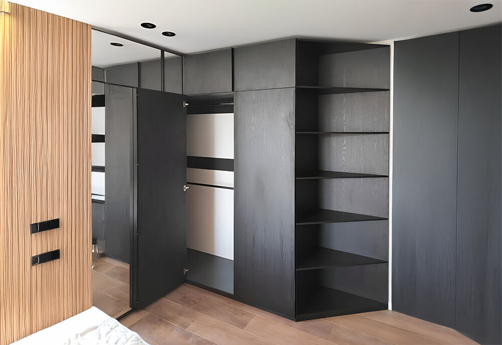 Угловой шкаф — одно из самых сложных изделий в мебельном проектировании. Он позволяет задействовать «мертвую зону» угла, но при ошибках в планировании может превратиться в глубокую неудобную «пещеру». Чтобы угловой шкаф был по-настоящему функциональным, нужно учитывать следующие технические и эксплуатационные нюансы: Самая частая ошибка — это полки, уходящие глубоко в угол, к которым невозможно дотянуться. Оптимальные решения: Перед покупкой важно промерить не только длину стен, но и их кривизну. Угловой шкаф часто ставится возле входной двери или межкомнатного проема. Угловые шкафы гораздо глубже стандартных (диагональ может достигать 90–100 см), поэтому обычного комнатного света не хватит. Без внутреннего освещения вы будете искать вещи «на ощупь». Рекомендуется устанавливать вертикальные светодиодные ленты по всей высоте угловой секции. Полки в угловых секциях часто имеют большую длину и площадь, чем в обычных. Если они сделаны из стандартного ЛДСП без дополнительных ребер жестко