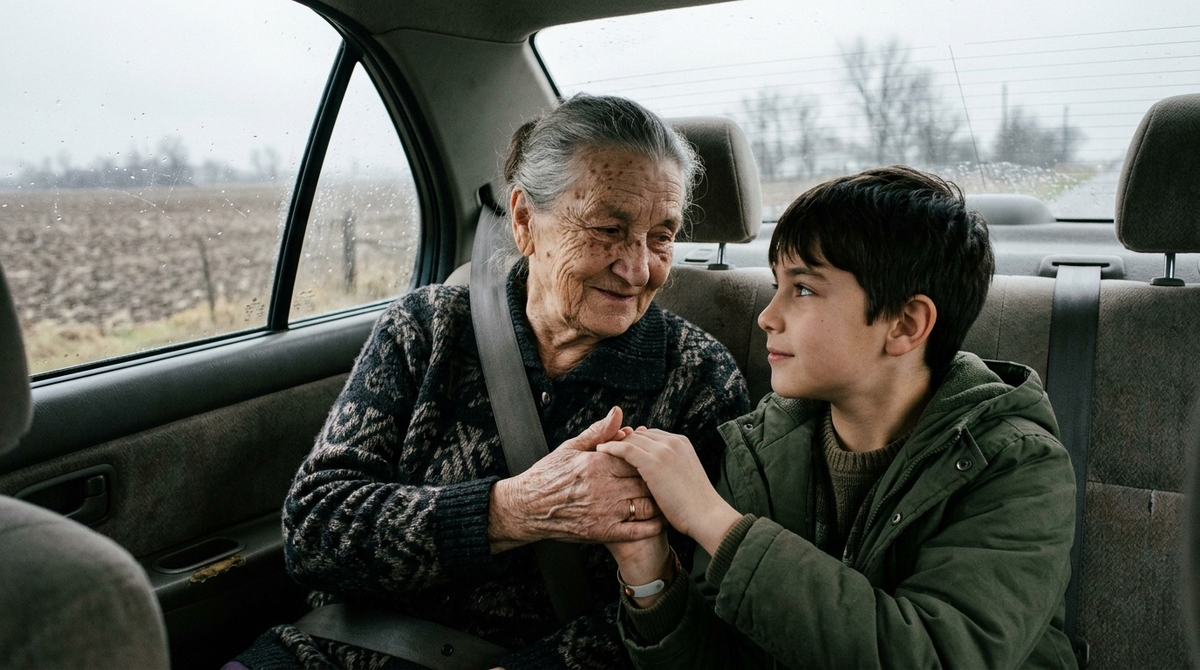 Обратно ехали втроём, на отцовской машине. Бабушка сидела спереди, Артём сзади. По радио передавали старую песню про «где-то на белом свете». Бабушка подпевала - не все слова, но мелодию держала.