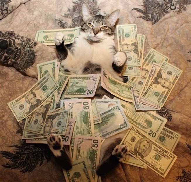 ! Желаем, чтобы деньги липли к вам так же уверенно, как кот к тёплому ноутбуку 😄 Чтобы кошелёк наполнялся быстрее, чем миска у кота после «я давно не ел». И чтобы ваши финансы были такими же независимыми и уверенными, как кот, который решил, что он тут главный. Ну и главное — пусть денег будет столько, чтобы даже ваш кот начал вас уважать 🐾💰