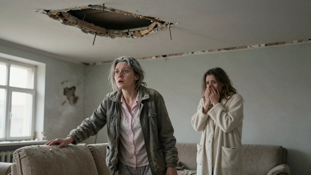 Я стояла в коридоре своей квартиры и смотрела в гостиную. Точнее, туда, где ещё утром была моя идеальная гостиная со светлым ламинатом и натяжным потолком. Теперь вместо потолка зияла чёрная рваная дыра, из которой торчали куски арматуры и переломанные доски. На моём диване лежал кусок бетонной плиты весом килограммов в двести.