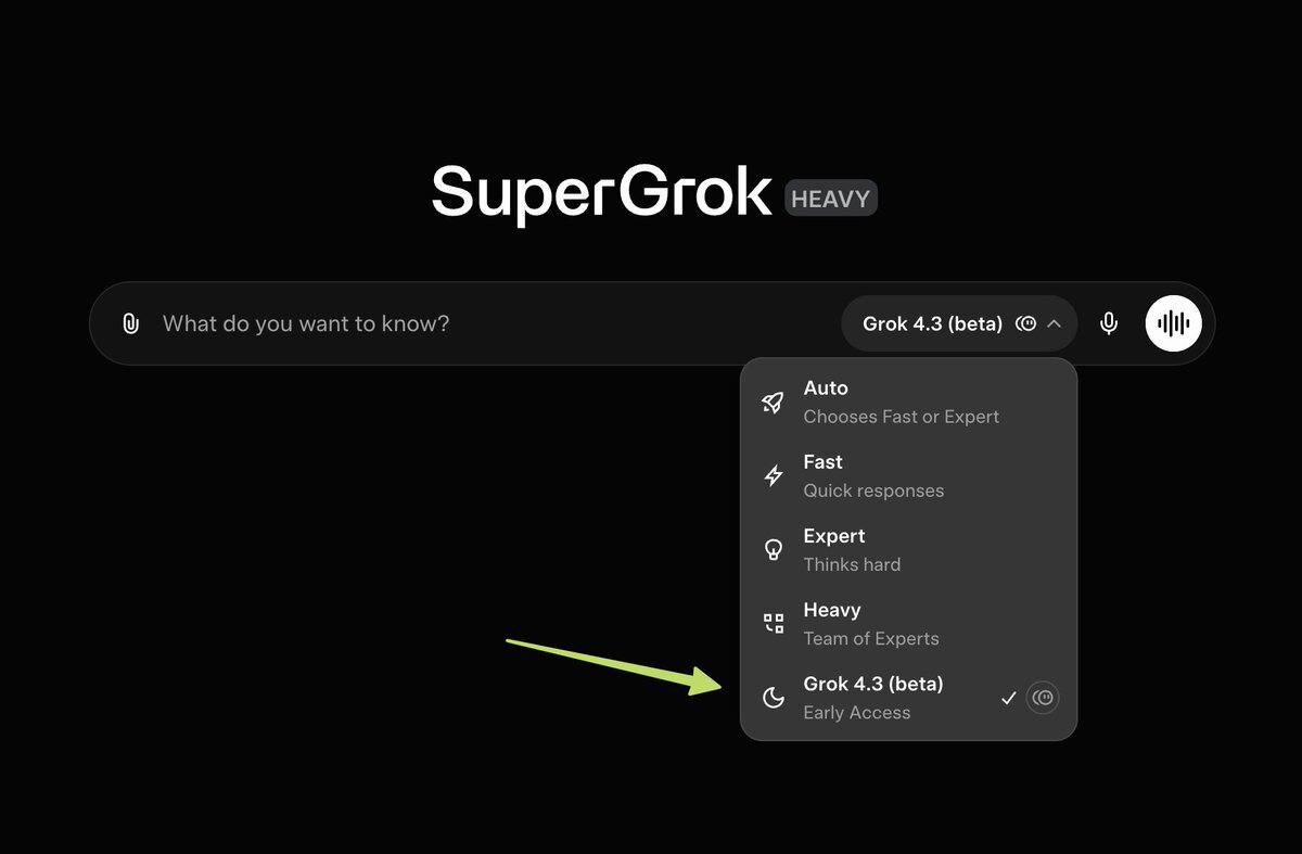 Поступила информация от так называемых информаторов, что иксы раскатали новый Grok 4.3 в бете
