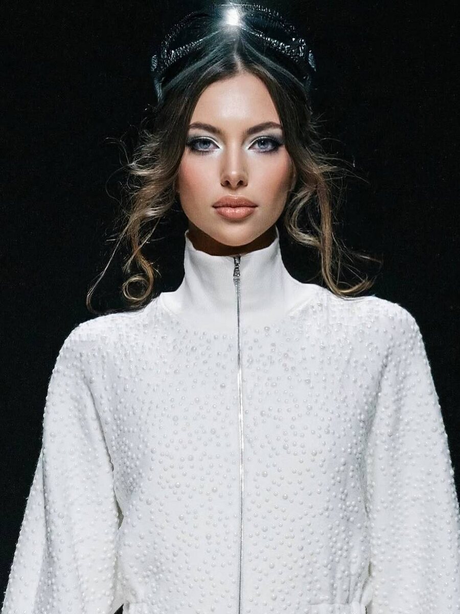 ❤️ В этом образе, воплощающем собой современный минимализм, представлен фактурный белый комбинезон с объемными рукавами и структурированным высоким воротником, обеспечивающий одновременно комфорт и изысканность. Жемчужный комбинезон контрастирует с темно-красными лакированными ботильонами, добавляя уверенности и современности. Шикарный ансамбль, сочетающий в себе нестареющую элегантность и яркий неповторимый стиль.
