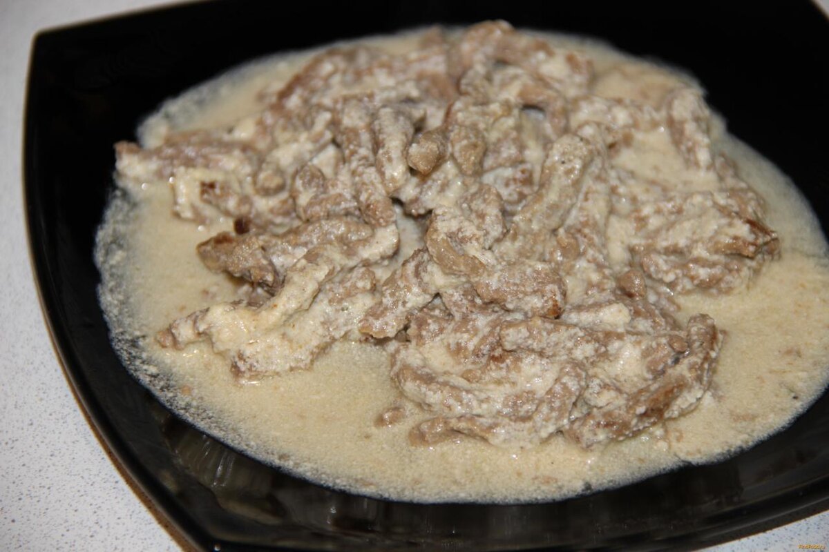 4. Вводите сметану постепенно. Для начала возьмите немного тёплого бульона, смешайте со сметаной и уже эту смесь добавьте в основное блюдо.