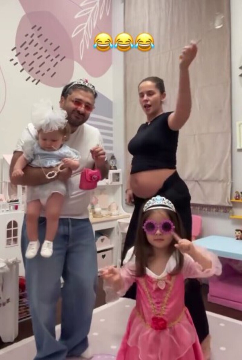 Лиза Моряк рассмешила фанатов семейным видео. Она с мужем и детьми устроила динамичные танцы. Беременная Лиза Моряк решила поднять настроение своим подписчикам. Она вместе с домочадцами устроила зажигательные танцы — особенно отличился ее супруг Сарик Андреасян. Режиссер водрузил на голову диадему, чтобы соответствовать стилю своих дочек. Старшая наследница отплясывала в платье, очках и с диадемой, а младшей родители нацепили бант. Сама Лиза предстала в черном топе и свободных брюках, ее живот был «на свободе». «Ну и кто самая красивая принцесса?» — поинтересовалась звезда «Онегина». Забавный семейный ролик тут же собрал массу комментариев. «Кто-кто? Та, что с бородой!», «Корона ему прям нормально подошла», «Клянусь, если у меня будет семья, то только такая», «Балдею с вашей семейки», — написали фолловеры Моряк. Также некоторые снова принялись гадать, кого же ждет Лиза. Одни считают, что «животик похож на девочку», другие же убеждены, что там растет парень. Сама актриса не скрывает, чт