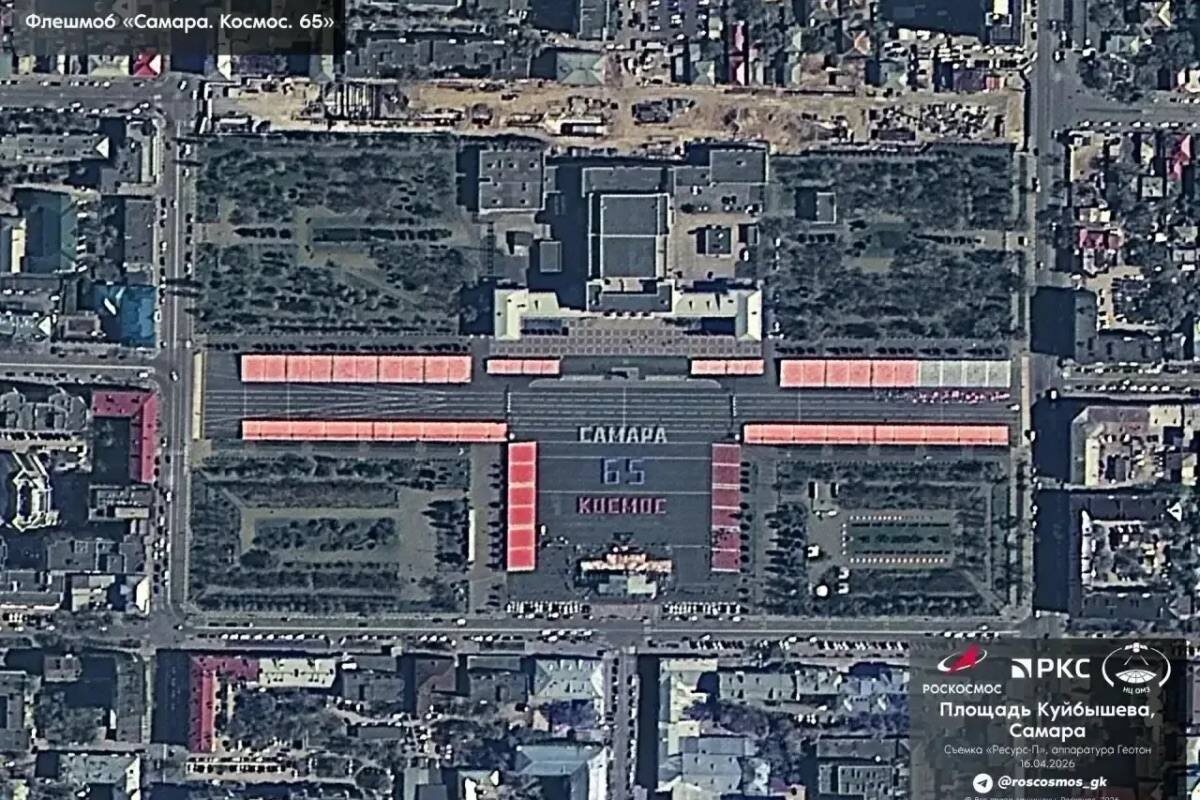 В честь 65-летия первого полета Юрия Гагарина в центре Самары на площади Куйбышева прошел масштабный флешмоб.