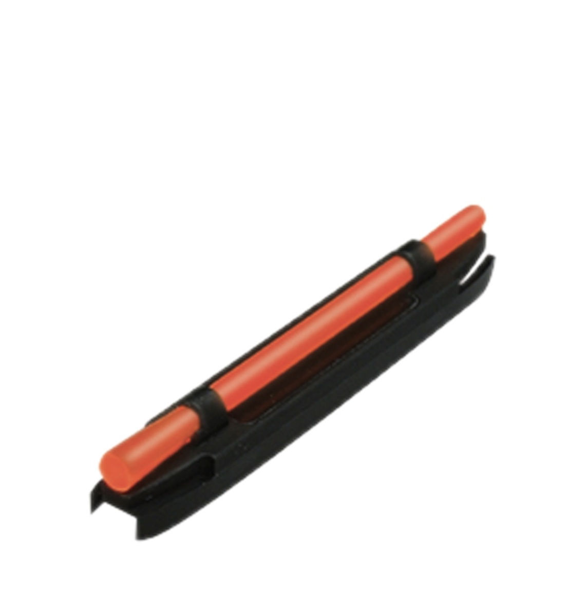 Основание этой небольшой по длине и достаточно тонкой мушки крепится к прицельной планке винтом. Размер мушки, а мы говорили, что её яркость зависит от площади боковой поверхности, так вот, размер оптимизирован для стрельбы в сумерках по малоразмерным целям. Таким, как вальдшнеп или чирок. Чем меньше угловые размеры цели и меньше её контрастность относительно фона, тем менее яркой и заметной должна быть и мушка. В противном случае при вскидке она в буквальном смысле «затмит» саму цель – глаза просто перестанут её видеть. Но даже на очень темном небе, едва заметное пятнышко Tru-Beadпозволяет четко контролировать обработку так же едва различимого силуэта птицы. А чтобы ещё облегчить зрению охотника задачу, эта мушка имеет четыре сменных тела разного цвета.