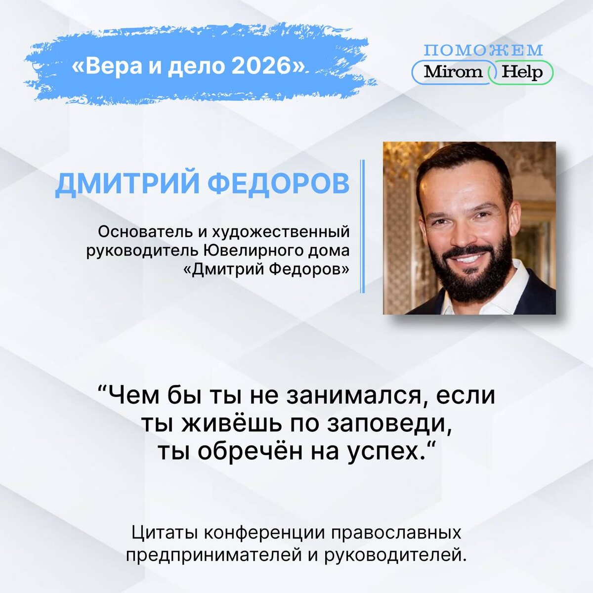 ❓Что первично — вера или дело? Можно ли искренне верить, но ничего не делать? Или дела без веры — просто механика? Мы собрали для вас 5 карточек с цитатами спикеров конференции православных предпринимателей и руководителей «Вера и дело 2026». @mirom_help – место встречи добрых сердец