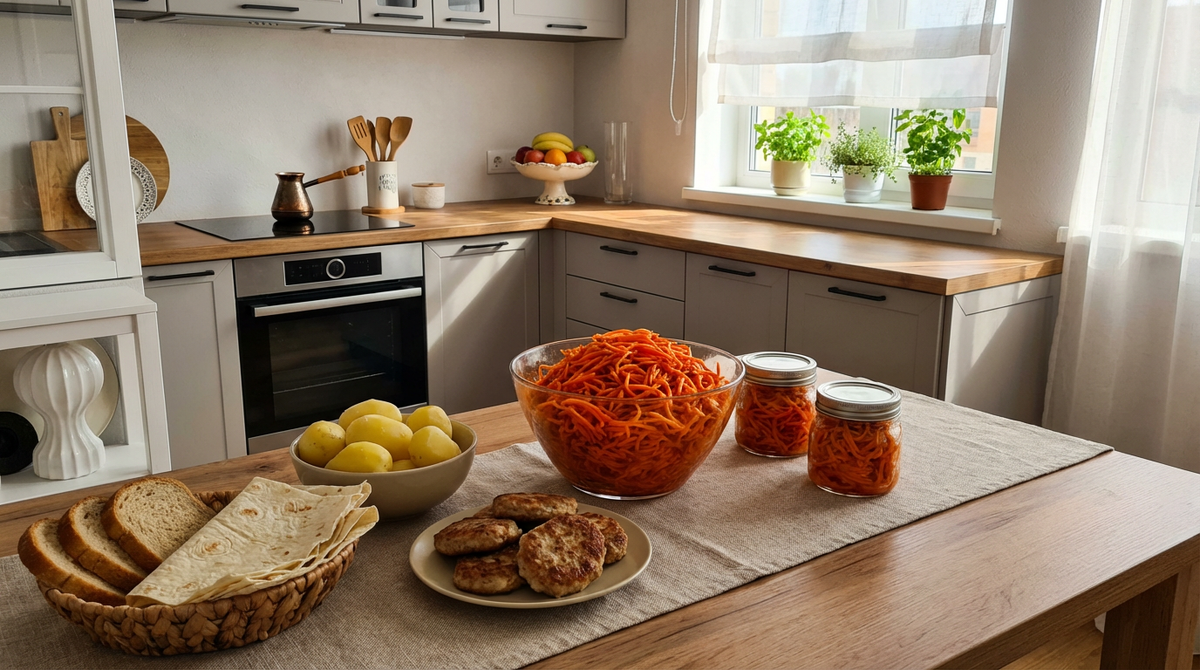 Корейская морковь - это не корейское блюдо. Это советская история: корейцы которые жили в СССР придумали эту закуску из доступных продуктов. Почему морковь по-корейски невкусная в магазине - потому что там экономят на масле и кладут химические ароматизаторы. Домашняя версия делается на горячем масле с живыми специями. Это другой запах и другой вкус - сразу чувствуется разница.