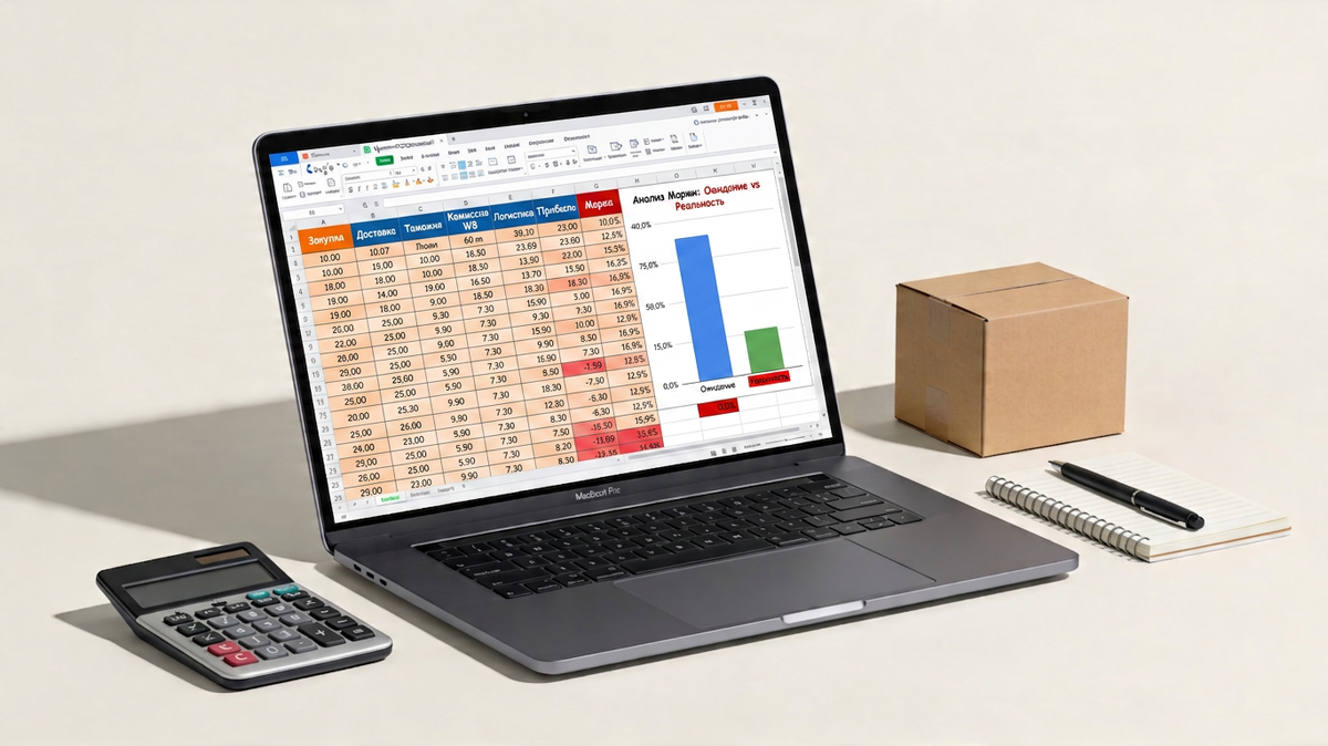 Большинство ошибок при закупке товара из Китая происходят не на этапе выбора ниши и не при переговорах с поставщиком. Они происходят в таблице. Точнее в её отсутствие. Предприниматель видит цену на 1688, прикидывает в голове "куплю за 200 рублей, продам за 800, вот и маржа 600" и делает заказ. Партия приходит, уходит на склад Wildberries, начинаются продажи, и выясняется, что реальная прибыль с единицы товара составляет не 600, а 80 рублей. Если вообще не уходит в минус.