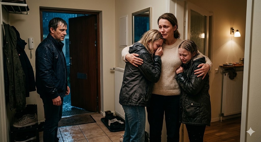 Елена замерла. Дверь медленно открылась. На пороге стоял Андрей, тяжело дыша. Из-за его спины выглядывали две промокшие насквозь фигурки. Лиза дрожала, как осиновый лист, ее губы посинели. Аня стояла, опустив голову, с ее светлых волос стекали ручейки воды.