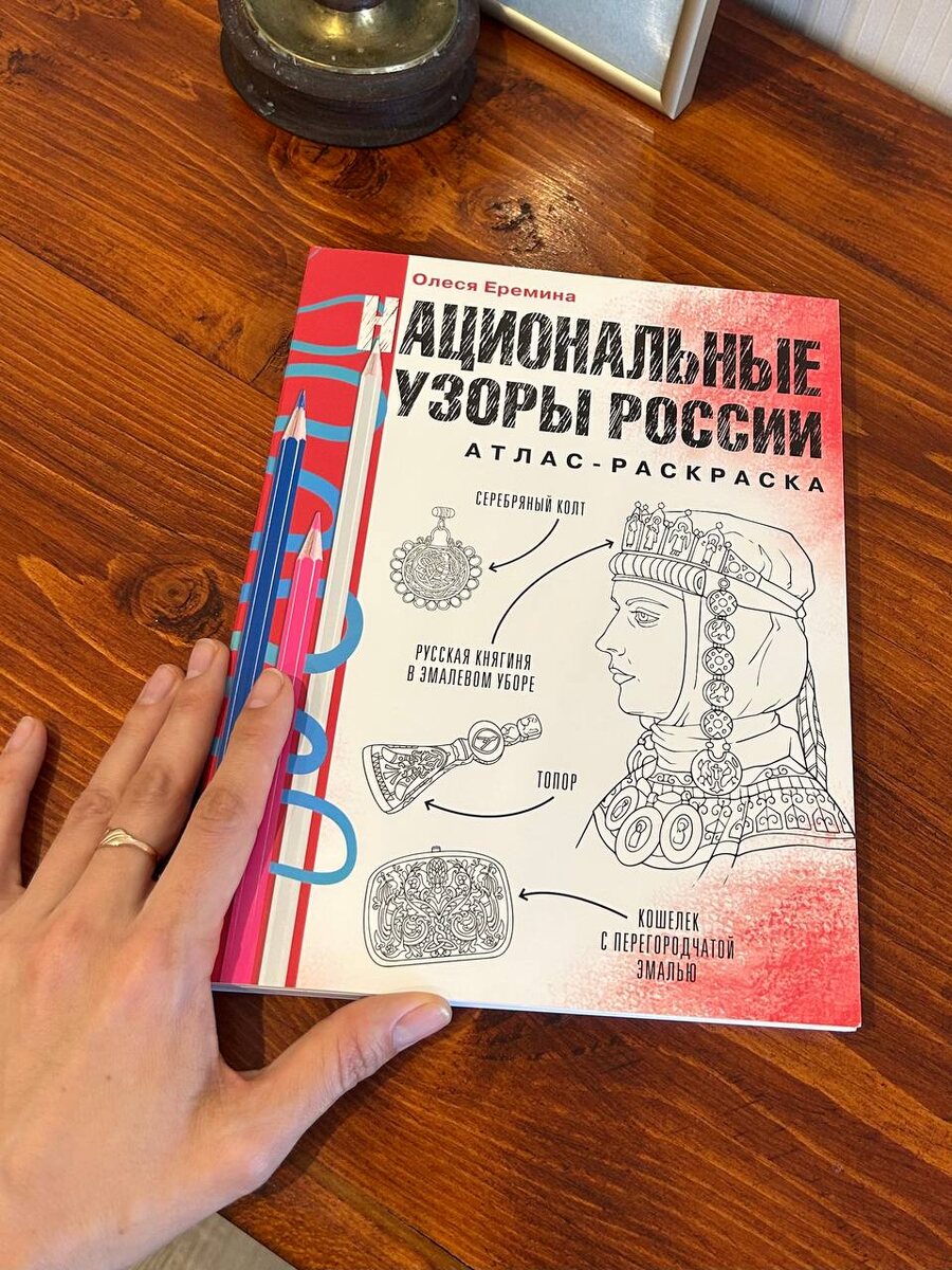 Давно пора рассказать, ведь случилось это еще в прошлом году. Недавно из издательства написали, что запускают дополнительный тираж, и я, наконец, поверила, что все по-настоящему. До этого было как в тумане — узорно-творческом. В 2023 г. издательство АСТ предложило мне стать автором научно-популярного атласа-раскраски «Национальные узоры России» (серия). Нужно было подобрать, систематизировать и описать значение узоров разных народов. Я согласилась сразу — хотя было страшно — и провела за работой почти год. Еще столько же над книгой работал художник. Собирала только народные, этнографически достоверные узоры — в книгах, музеях, научных сборниках, на выставках и лекциях. Кстати, ходить по музею в роли исследователя, когда есть задача — редкое удовольствие! Очень помогли ученики Школы ремесел, участники клуба и подписчики блога. Спасибо вам за это. В процессе я поняла: в народной культуре орнамент выполнял ту же функцию, что сказка или ритуал — помогал справляться с жизнью. Это не прос