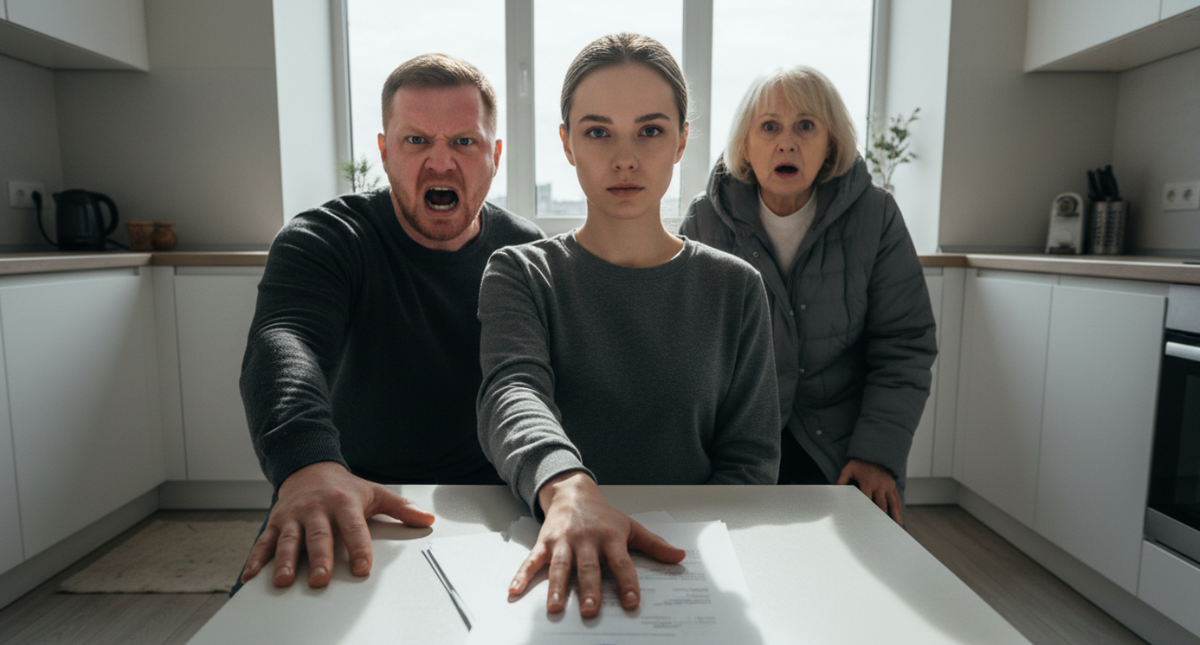 Вернувшись на кухню, Лера уверенным жестом положила на стол перед раскрасневшимся от крика мужем официальный документ с синими гербовыми печатями, тяжело припечатав его ладонью.
