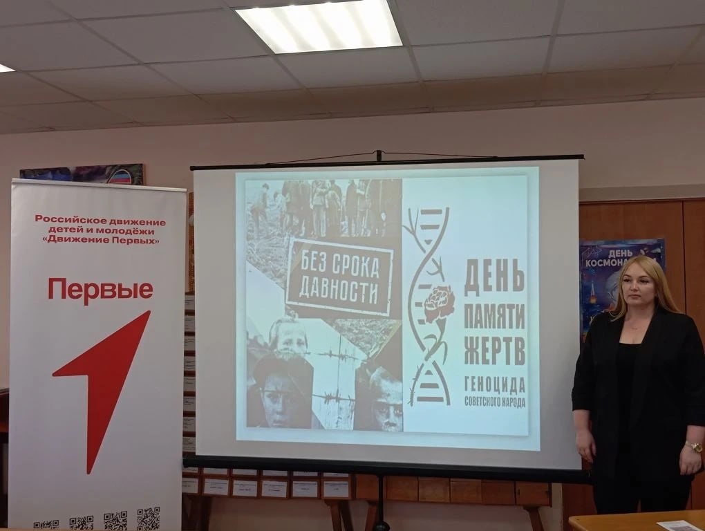 » В преддверии памятной даты — Дня памяти жертв геноцида советского народа, совершённого нацистами и их пособниками в годы Великой Отечественной войны, в Центральной городской библиотеке им. А. И. Куприна состоялась тематическая беседа для обучающихся 7–8-х классов Гимназии им. Г. Т. Берегового. Мероприятие прошло под названием «Испытания и жертвы на пути к Победе» и было направлено на сохранение исторической памяти и формирование у подрастающего поколения уважительного отношения к трагическим страницам истории. 👥В беседе приняли участие заместитель председателя Енакиевского городского совета Анна Деменкова, активисты городского Движения Первых, а также корреспондент городской газеты «Енакиевский рабочий» Александр Цыба. 🕯Тема геноцида советского народа в годы Второй мировой войны имеет не только важное историческое, но и глубокое нравственное и правовое значение. Рассказ библиотекаря сопровождался показом фото- и видеоматериалов, отражающих преступления нацистского режима на окк