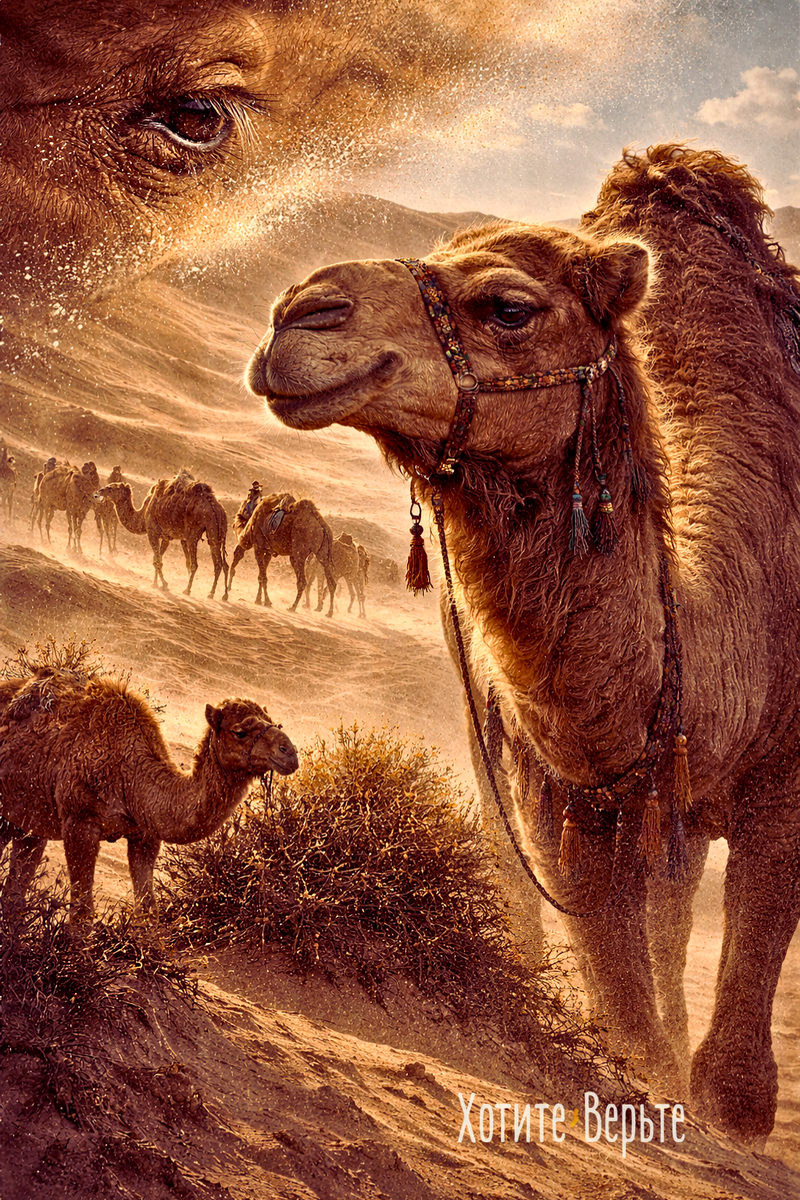 Приветствую вас, друзья! С вами канал «Хотите Знать?» и я, его автор, Леонид Блудилин. Верблюд — удивительное животное, идеально приспособленное к жизни в суровых условиях пустыни. Он способен пить как пресную, так и солёную воду, выдерживая уровень солёности, который для большинства млекопитающих оказался бы губительным. Иногда можно встретить утверждение, будто верблюд способен без вреда пить даже воду из Мёртвого моря, однако это скорее преувеличение: столь экстремальная солёность всё же опасна. Тем не менее почки верблюда действительно работают с поразительной эффективностью — они экономно расходуют воду и выводят избыток солей, позволяя организму сохранять влагу в условиях постоянной жажды. Питание верблюда также кажется невероятным: он спокойно поедает жёсткие и колючие растения, которые другие животные избегают. Дело в особом строении ротовой полости: плотные, ороговевшие ткани губ и внутренней поверхности рта защищают его от повреждений. Кроме того, его пищеварительная систем
